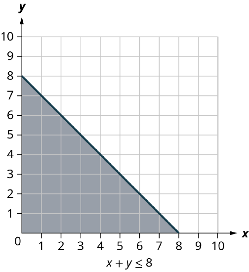 Step 2: Compose inequalities representing the constraints of the system. From Example 5.98, the constraints are \(x+y \leq 8\) and \(3 x+4 y \leq 27\).