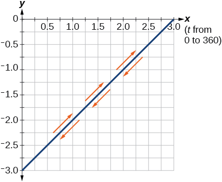 The point has a positive angle but a negative radius and is plotted by moving to an angle of and then moving 3 units in the negative direction. This places the point 3 units down the negative y-axis. The point has a negative angle and a positive radius and is plotted by first moving to an angle of and then moving 3 units down, which is the positive direction for a negative angle. The point is also 3 units down the negative y-axis.