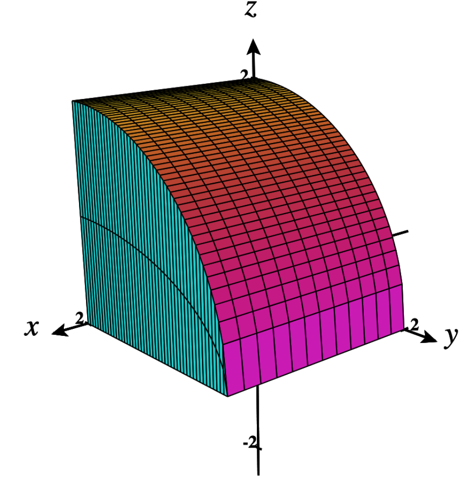 \(\newcommand{\avec}{\mathbf a}\) \(\newcommand{\bvec}{\mathbf b}\) \(\newcommand{\cvec}{\mathbf c}\) \(\newcommand{\dvec}{\mathbf d}\) \(\newcommand{\dtil}{\widetilde{\mathbf d}}\) \(\newcommand{\evec}{\mathbf e}\) \(\newcommand{\fvec}{\mathbf f}\) \(\newcommand{\nvec}{\mathbf n}\) \(\newcommand{\pvec}{\mathbf p}\) \(\newcommand{\qvec}{\mathbf q}\) \(\newcommand{\svec}{\mathbf s}\) \(\newcommand{\tvec}{\mathbf t}\) \(\newcommand{\uvec}{\mathbf u}\) \(\newcommand{\vvec}{\mathbf v}\) \(\newcommand{\wvec}{\mathbf w}\) \(\newcommand{\xvec}{\mathbf x}\) \(\newcommand{\yvec}{\mathbf y}\) \(\newcommand{\zvec}{\mathbf z}\) \(\newcommand{\rvec}{\mathbf r}\) \(\newcommand{\mvec}{\mathbf m}\) \(\newcommand{\zerovec}{\mathbf 0}\) \(\newcommand{\onevec}{\mathbf 1}\) \(\newcommand{\real}{\mathbb R}\) \(\newcommand{\twovec}[2]{\left[\begin{array}{r}#1 \\ #2 \end{array}\right]}\) \(\newcommand{\ctwovec}[2]{\left[\begin{array}{c}#1 \\ #2 \end{array}\right]}\) \(\newcommand{\threevec}[3]{\left[\begin{array}{r}#1 \\ #2 \\ #3 \end{array}\right]}\) \(\newcommand{\cthreevec}[3]{\left[\begin{array}{c}#1 \\ #2 \\ #3 \end{array}\right]}\) \(\newcommand{\fourvec}[4]{\left[\begin{array}{r}#1 \\ #2 \\ #3 \\ #4 \end{array}\right]}\) \(\newcommand{\cfourvec}[4]{\left[\begin{array}{c}#1 \\ #2 \\ #3 \\ #4 \end{array}\right]}\) \(\newcommand{\fivevec}[5]{\left[\begin{array}{r}#1 \\ #2 \\ #3 \\ #4 \\ #5 \\ \end{array}\right]}\) \(\newcommand{\cfivevec}[5]{\left[\begin{array}{c}#1 \\ #2 \\ #3 \\ #4 \\ #5 \\ \end{array}\right]}\) \(\newcommand{\mattwo}[4]{\left[\begin{array}{rr}#1 \amp #2 \\ #3 \amp #4 \\ \end{array}\right]}\) \(\newcommand{\laspan}[1]{\text{Span}\{#1\}}\) \(\newcommand{\bcal}{\cal B}\) \(\newcommand{\ccal}{\cal C}\) \(\newcommand{\scal}{\cal S}\) \(\newcommand{\wcal}{\cal W}\) \(\newcommand{\ecal}{\cal E}\) \(\newcommand{\coords}[2]{\left\{#1\right\}_{#2}}\) \(\newcommand{\gray}[1]{\color{gray}{#1}}\) \(\newcommand{\lgray}[1]{\color{lightgray}{#1}}\) \(\newcommand{\rank}{\operatorname{rank}}\) \(\newcommand{\row}{\text{Row}}\) \(\newcommand{\col}{\text{Col}}\) \(\renewcommand{\row}{\text{Row}}\) \(\newcommand{\nul}{\text{Nul}}\) \(\newcommand{\var}{\text{Var}}\) \(\newcommand{\corr}{\text{corr}}\) \(\newcommand{\len}[1]{\left|#1\right|}\) \(\newcommand{\bbar}{\overline{\bvec}}\) \(\newcommand{\bhat}{\widehat{\bvec}}\) \(\newcommand{\bperp}{\bvec^\perp}\) \(\newcommand{\xhat}{\widehat{\xvec}}\) \(\newcommand{\vhat}{\widehat{\vvec}}\) \(\newcommand{\uhat}{\widehat{\uvec}}\) \(\newcommand{\what}{\widehat{\wvec}}\) \(\newcommand{\Sighat}{\widehat{\Sigma}}\) \(\newcommand{\lt}{<}\) \(\newcommand{\gt}{>}\) \(\newcommand{\amp}{&}\) \(\definecolor{fillinmathshade}{gray}{0.9}\)These dynamic figures were created using CalcPlot3D for use in the OpenStax Calculus on the LibreTexts platform. These figures are available to remix into any custom textbook (typically using the Content reuse option on the Elements menu of the page editor), as they have already been remixed into the OpenStax Calculus textbook.