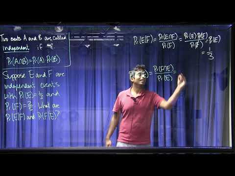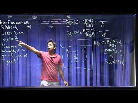and are independent events, . We can use this information to fill out a Venn diagram and determine that and . Another way to do this problem is to realize that since and are independent, so are and , and and (and, though it isn't relevant for this problem, and ). Therefore, for the first part of the problem, we can rewrite the numerator as . We can do the same thing for the second part of the problem: . - We use the conditional probability formula: