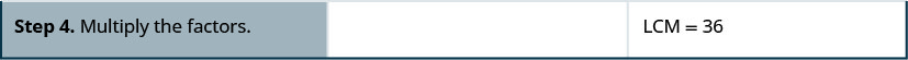 One of the reasons we look at primes is to use these techniques to find the least common multiple of two numbers. This will be useful when we add and subtract fractions with different denominators.