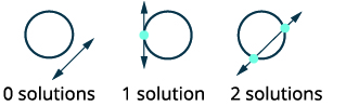When we solved systems of linear equations, the solution of the system was the point of intersection of the two lines. With systems of nonlinear equations, the graphs may be circles, parabolas or hyperbolas and there may be several points of intersection, and so several solutions. Once you identify the graphs, visualize the different ways the graphs could intersect and so how many solutions there might be.